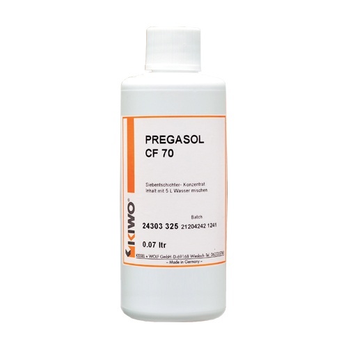 Το PREGASOL CF70 είναι ένα ιδιαίτερα αποτελεσματικό, υγρό συμπύκνωμα για την αφαίρεση της εμουλσιόν από τη γάζα μεταξοτυπίας. Τα διαλύματα PREGASOL CF 70 είναι διαυγή, άοσμα, χωρίς χλώριο, δεν βλάπτουν τη γάζα και δεν έχουν λευκαντική δράση. Το περιεχόμενο μιας συσκευασίας PREGASOL CF70 αρκεί για την παρασκευή περίπου 5 λίτρων διαλύματος έτοιμου προς χρήση.