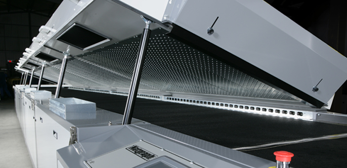The inlet and the outlet of these dryers can be extended to enable the dryer to operate with more than one printing machine, or allow extra time for 'ink flow'. These extensions are in multiples of 0.5m, or 1m sections and can be fitted with vacuum hold-down systems.