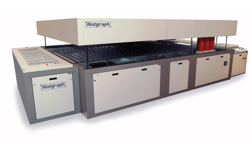 Natgraph manufacture a range of Air Force IR Glass Dryers that has been developed from years of experience gained in the production of 100's of IR High Temperature Conveyorised Systems, that are in world-wide daily use. These versatile dryers have the ability to dry typically 'slow' pine oil and water miscible inks using a combination of Infra Red radiation with Hot Air and ambient or refrigerated air cooling from above and below.