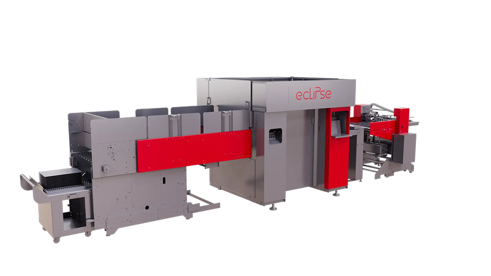 Eclipse series automates the die-cutting process by integrating mechanical creasing into the continuous production flow, which is completed by laser cutting (or plotter stations).