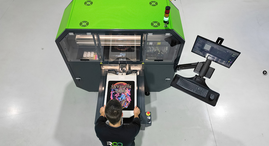 The ROQ GO is a 100% digital machine, with a unique pallet, which incorporates the latest technological innovations in the digital world. With the support of a pre-treatment machine, ROQ Ready, it is able to print high quality pieces that are highly resistant to washing. It is perfect for small productions or business related to e-commerce.