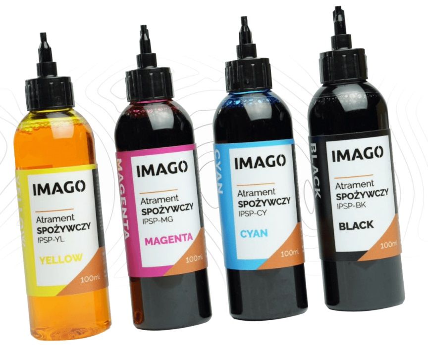 Jestive boje koja se koriste u štampačima su standardne boje u konditorskim proizvodima. Potpuno su bezbedne i netoksične. Napravljene su u skladu sa strogim standardima EU za prehrambene proizvode. Pored toga, materijali koji se koriste u mašini prilagođeni su prehrambenoj industriji.
