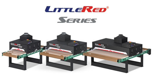 Little Red “D” series models are supplied with a high temperature preheating zone that raises the temperature to 149°C+ within the first few centimetres of the belt travel. This process reduces the waiting time of the ink in the oven, as it exposes the ink to a higher temperature than the initial stages of drying, allowing for more productive speeds.