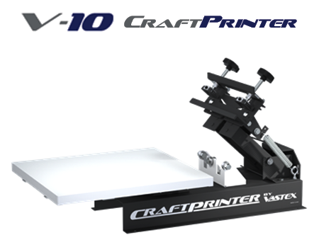 Mašina za sito štampu V-10 CraftPrinter™ je dizajnirana za štampanje na monohromatskim tkaninama, odeći, maskama, promotivnim materijalima, reklamama malog formata i ravnoj štampi. Prihvata ramove do 58 x 78 cm i pruža mogućnosti registracije dizajna koje nisu dostupne kod uporedivih jeftinih desktop modela. Konstrukcija je metalna i uključuje metalnu paletu za štampanje (sto) dizajniranu da smanji izobličenja i savijanja, glavu sa mogućnošću da podrži ram u uspravnom položaju, donji položaj za podršku rama (položaj za štampanje) sa sistemom stezanja u tri tačke, podesivi razmak (rastojanje od podloge) i podešavanje visine i nivoa rama.
