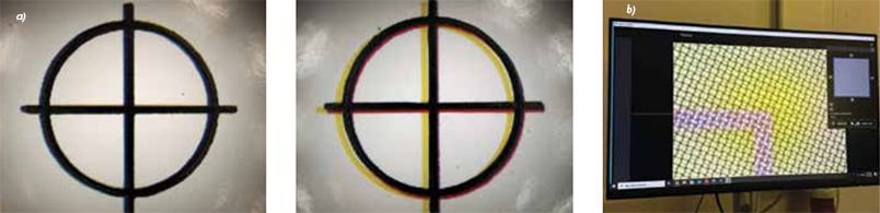 b) Το μικροσκόπιο DAEDALUS συνδέεται με μια οθόνη για να ανιχνεύει και να καταγράφει άμεσα τυχόν παραμορφώσεις.