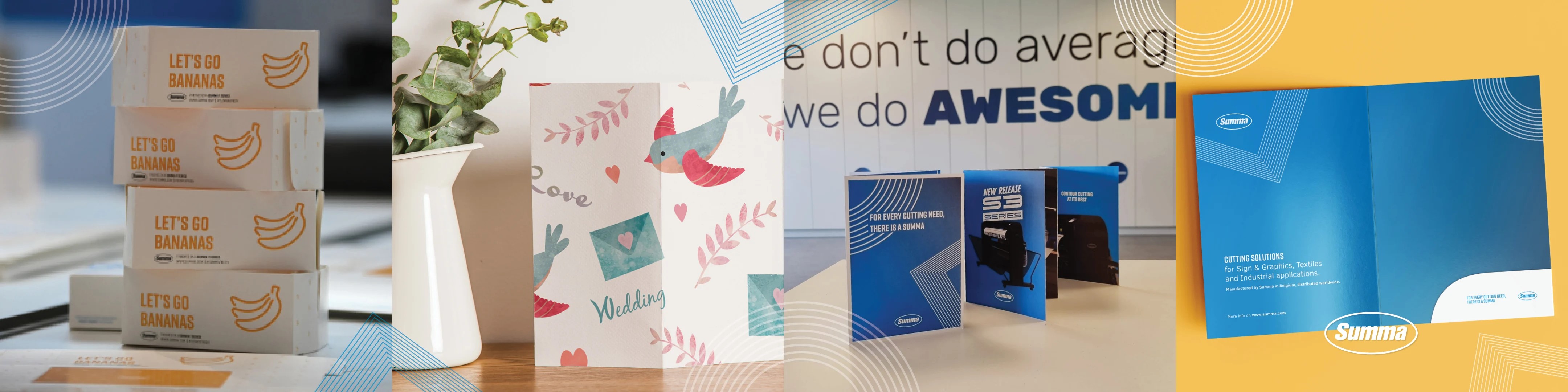 Το πτυσσόμενο χαρτόνι είναι πολύ ευέλικτο στις εφαρμογές του. Ο συνδυασμός του με τη σειρά S Class 3 μπορεί να προσφέρει εξαιρετικά αποτελέσματα: για παράδειγμα, μενού εστιατορίων ή προσωποποιημένες ευχετήριες κάρτες, μικρές ποσότητες φυλλαδίων ή folders μπορούν να παραχθούν με ένα κοπτικό βινυλίου S3. Η δημιουργία custom κουτιών για δώρα ή εταιρικές κάρτες είναι επίσης μια επιλογή.