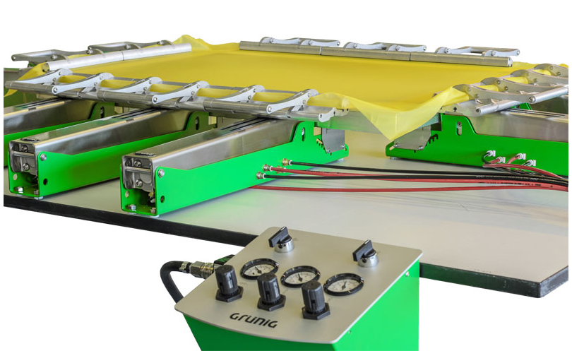 - Lowering of the gauze after stretching with programmed pneumatic pressure