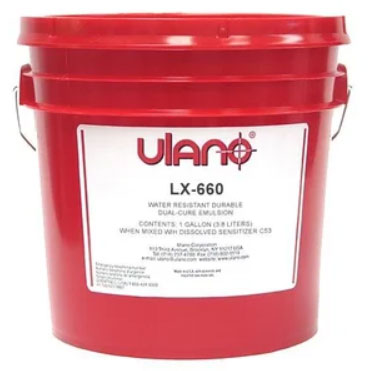 Diazo sensitized, high quality, high solids dual-cure emulsion with excellent resistance to all solvent based and UV inks.