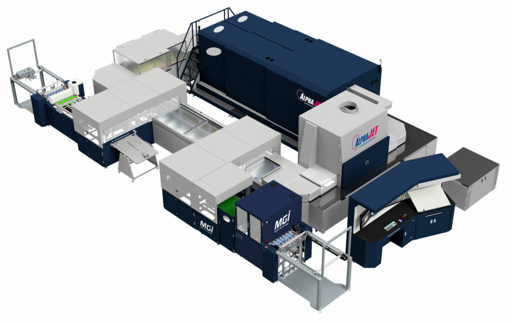 AlphaJET se integriše u proizvodni tok štampanja i objedinjuje, u jednoj operaciji, proizvodni ciklus koji je nekada bio izvođen na više različitih mašina, ili je čak bio angažovan uslužno. Ova 5.0 fabrika štampe, eliminiše proces nepotrebnog gubitka vremena. AlphaJet fabrika je razvijana imajući na umu ekološku odgovornost.