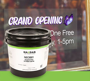 NSC9001 UV Roller Coat Exterior Clear is a unique UV curing, roller coat clear designed to adhere over latex digital inks used on interior and exterior vinyl decals. NSC9001 provides flexibility, uniform gloss, chemical resistance, and weather resistance when printed over latex digital inks.